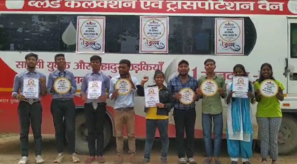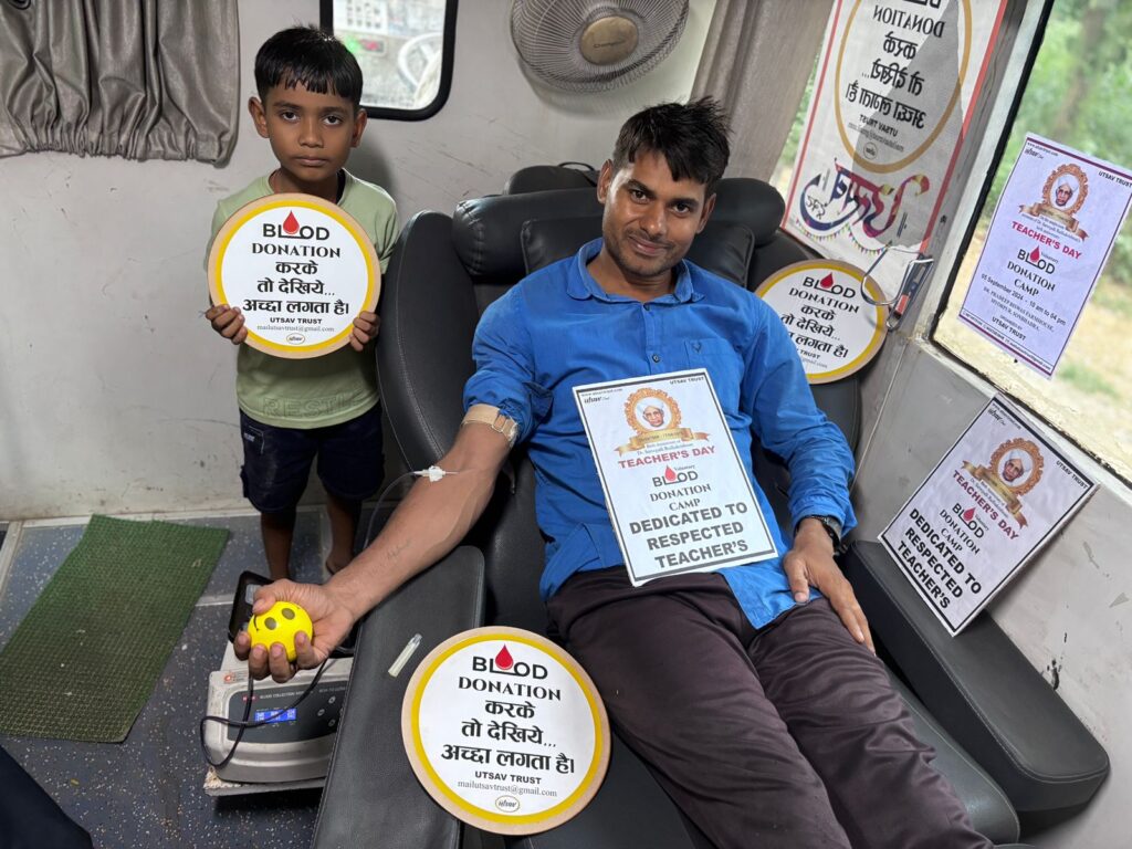 म्योरपुर (सोनभद्र) । उत्सव ट्रस्ट द्वारा शिक्षक दिवस 5 सितम्बर 2024 के शुभ अवसर पर जनपद सोनभद्र के आदिवासी बाहुल्य क्षेत्र दुद्धी तहसील के म्योरपुर में डॉ प्रदीप कुमार विश्वास फार्म हाउस पर शिक्षकों के सम्मान में स्वैच्छिक रक्तदान शिविर का आयोजन किया गया।