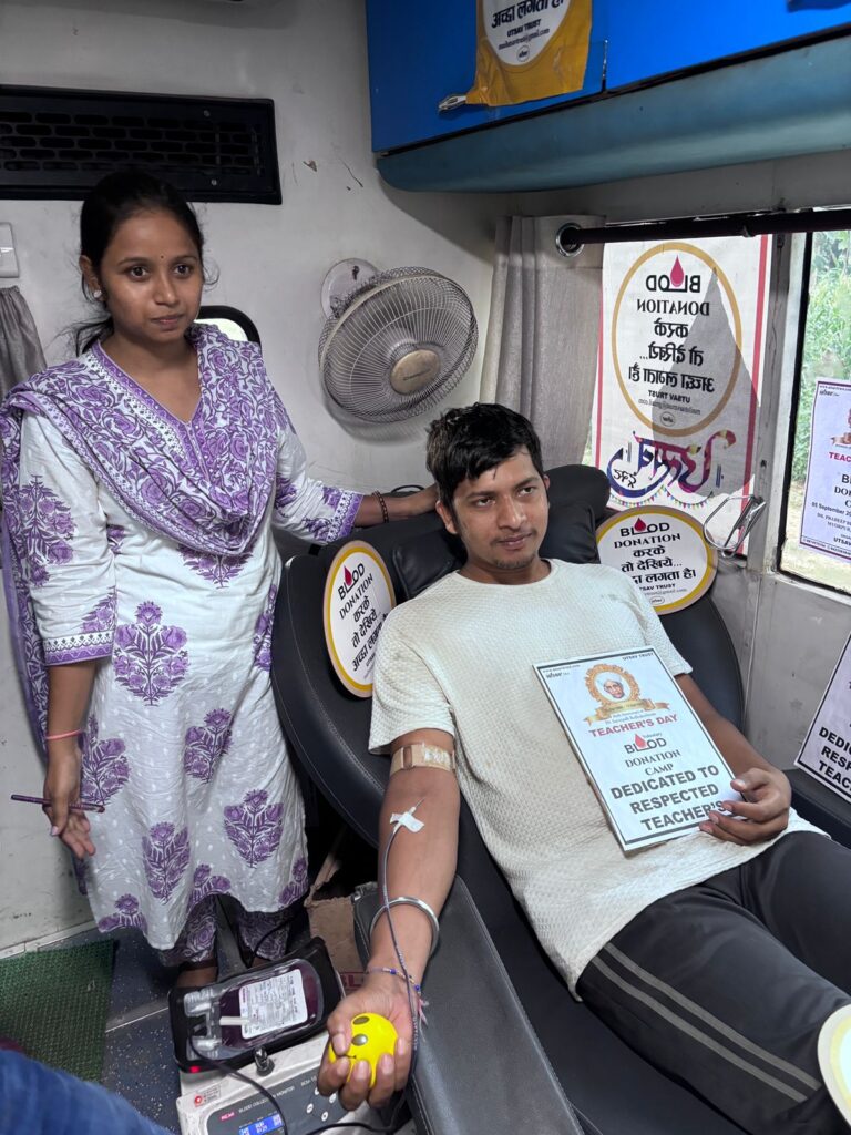 स्नातक के छात्र अविनाश अग्रहरी ने अपने जन्म दिवस पर प्रथम बार रक्तदान कर मनाया शिक्षक दिवस