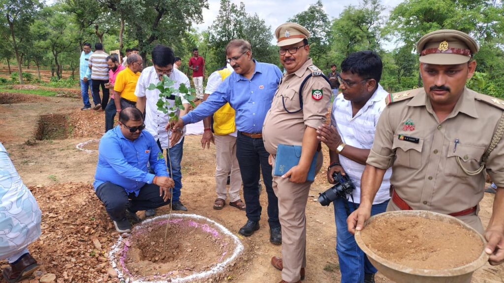 रेणुकूट (सोनभद्र) : प्रधानमंत्री श्री नरेन्द्र मोदी की महत्वाकांक्षी अभियान एक पेड़ माँ के नाम को साकार रूप देने के लिए उत्तर प्रदेश सरकार के आह्वान पर क्षेत्र के डीएफओ कमल किशोर जी विशेष आमंत्रण पर रोटरी क्लब रेनुकूट ने अपना योगदान दिया।