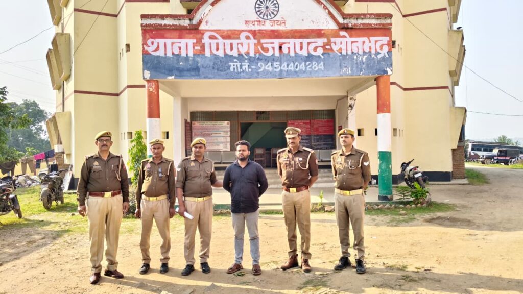 पिपरी (सोनभद्र) श्रीमान् पुलिस अधीक्षक सोनभद्र महोदय के निर्देशन एवं श्रीमान् अपर पुलिस अधीक्षक मुख्यालय एवं श्रीमान् क्षेत्राधिकारी पिपरी के कुशल मार्गदर्शन व प्रभारी निरीक्षक महोदय के नेतृत्व में चलाये जा रहे अभियान अवैध मादक पदार्थ की बिक्री व चेकिंग संदिग्ध व्यक्ति/वाहन चेकिंग के सम्बन्ध में ANTF निरीक्षक सुरेन्द्र नाथ सिंह मय हमराह व प्र०नि० पिपरी सत्येन्द्र कुमार राय मय हमराह के मय वाहन चालक के थाना हाजा से रवाना होकर देखभाल क्षेत्र चेकिंग संदिग्ध व्यक्ति/वाहन में तुर्रा तिराहे पर में मौजूद थे कि मुखबिरी सूचना पर नवकुटिया तुर्रा से दिनांक-10.11.2025 समय-00.37. बजे, 01 नफर अभियुक्त सौरभ कुमार सोनी पुत्र मुन्ना सोनी निवासी डिबुलगंज दुर्गा मंदिर थाना अनपरा जनपद सोनभद्र उम्र करीब 24 वर्ष के कब्जे से 390 ग्राम नाजायज हेरोइन बरामद कर थाना पिपरी जनपद सोनभद्र के आधार मु0अ0सं0 222/2025 धारा-8/20/29/60 NDPS Act का अभियोग पंजीकृत कर अभियुक्त को मा० न्यायालय भेजा गया।