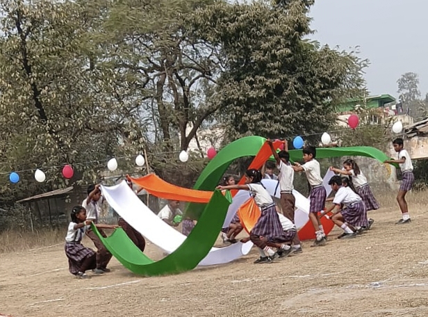 समारोह के अंत में सभी बच्चों को मिष्ठान वितरित किया गया। बच्चों के चेहरों पर झलकता उत्साह और आत्मविश्वास इस बात का प्रतीक था कि वे न केवल शिक्षा, बल्कि राष्ट्रीय एकता के पाठ को भी बखूबी समझ रहे हैं।