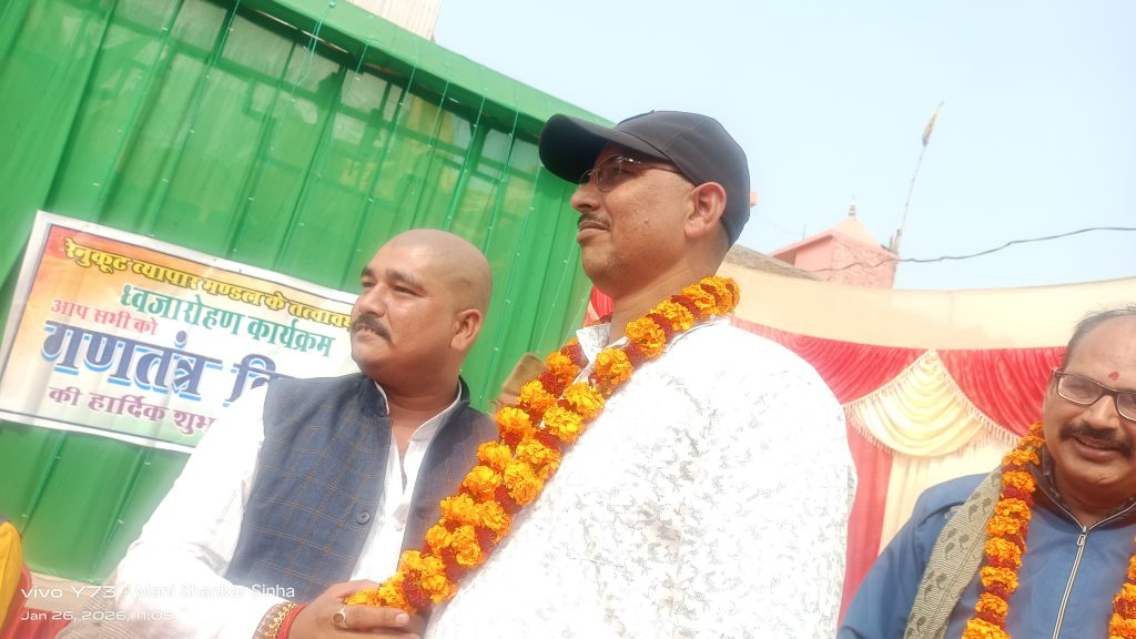 रेणुकूट (सोनभद्र)। व्यापार मंडल रेणुकूट के तत्वावधान में देश का 77वां गणतंत्र दिवस हर्षोल्लास और देशभक्ति के माहौल में मनाया गया। इस अवसर पर व्यापारियों द्वारा ध्वजारोहण कर 26 जनवरी का पर्व उत्साहपूर्वक मनाया गया।