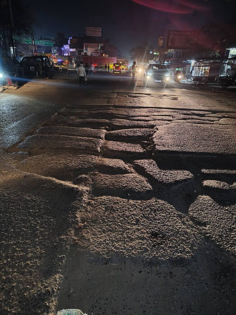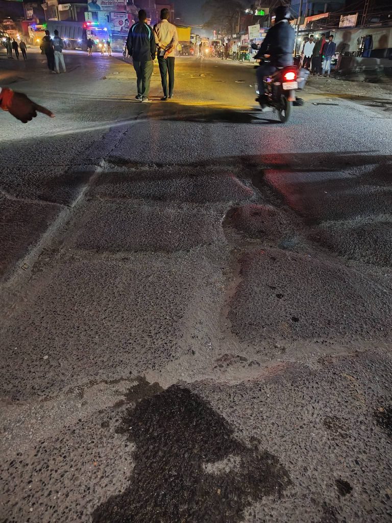 पूरी रोड़ फिर भी मिर्जापुर जिले में बहुत बड़े बड़े राजनीतीक पकड़ होने वाले के रहते हुए भी आप पास की जनता रोज धूल फांक रहीं है एक किलोमीटर की दुरी में लोगो का जीना दुभर हों गया है न जाने कितनी मौते और होंगी वादे बड़े बड़े और काम जमीन पर यही दिख रहा गड्डे बड़े बड़े ।