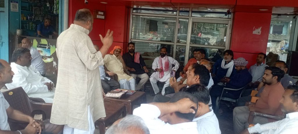 रेणुकूट (सोनभद्र) : आज दिनांक 07/03/026 दिन शनिवार को रेणुकूट व्यापार मण्डल अध्यक्ष चुनाव हेतु अधिसूचना जारी कर व्यपारियो को नए अध्यक्ष के चुनाव के लिए तैयार कर दिया गया । शाम 3 बजे लगभग ज्यादातर व्यापारी धीरे धीरे काली मन्दिर स्थित अंजली फर्नीचर निकट पंजाब नेशनल बैंक के पास जुटने लगे , सैकड़ों की संख्या में उपस्थित व्यपारियो ने एक मत से चुनाव कराने की सहमति व्यक्त की , मंच का संचालन वरिष्ठ समाज सेवी अमरेंद्र सिंह ने करते हुए सभी दुकानदार भाईयो को कुनाव करने की सहमत करते हुए कहा की पिछला कार्यकाल पूर्ण हो चुका है.